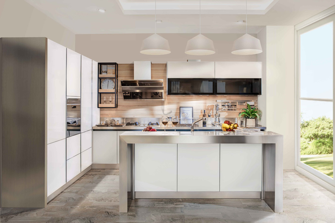 Tủ bếp inox thường có vẻ ngoài sáng bóng, hiện đại, phù hợp với những không gian bếp có tần suất sử dụng cao hoặc yêu cầu vệ sinh nghiêm ngặt. Sự kết hợp Inox với mặt cánh gỗ công nghiệp như Acrylic, Laminate cũng tạo nên những thiết kế độc đáo, vừa bền bỉ vừa mang tính thẩm mỹ cao.
