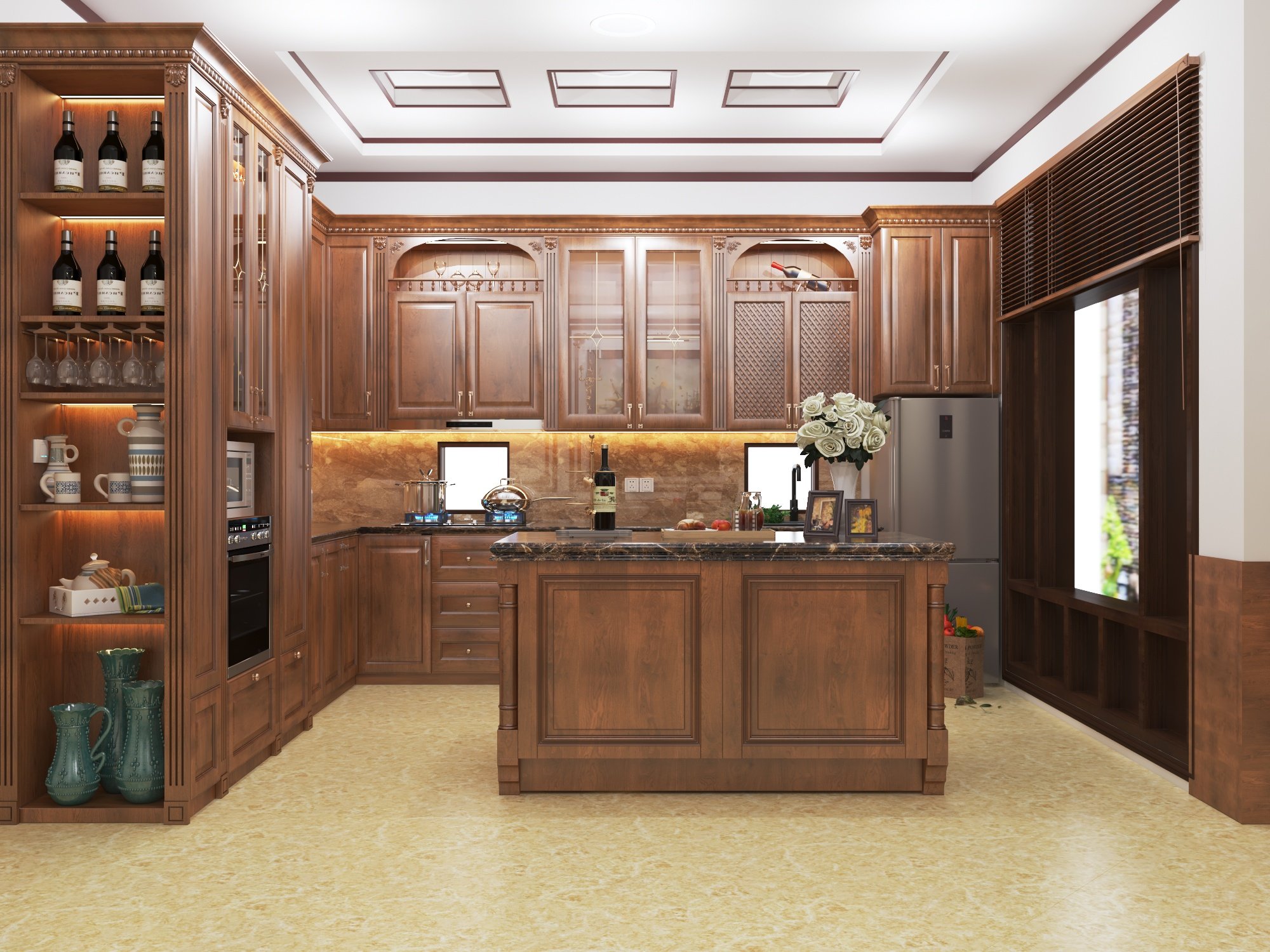 Ứng dụng trong thiết kế bếp hiện đại kết hợp truyền thống