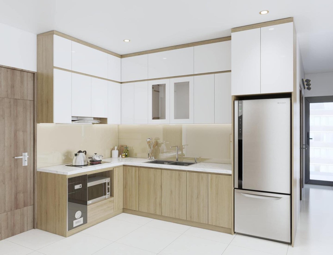1.2. Tủ bếp khung inox cánh nhựa composite cao cấp chữ L
