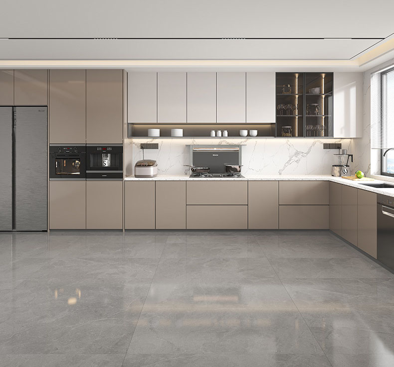 Chất liệu này cũng giúp tủ bếp chịu nhiệt tốt, không bị ảnh hưởng bởi độ ẩm, mối mọt hay thay đổi nhiệt độ trong bếp. Tủ bếp này còn giúp việc vệ sinh trở nên dễ dàng hơn và tạo điểm nhấn cho không gian bếp thêm phần lịch lãm và sang trọng.