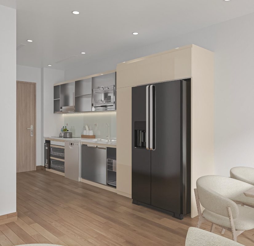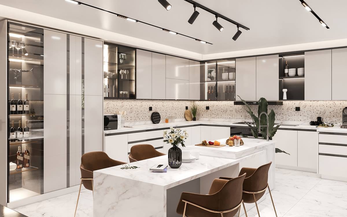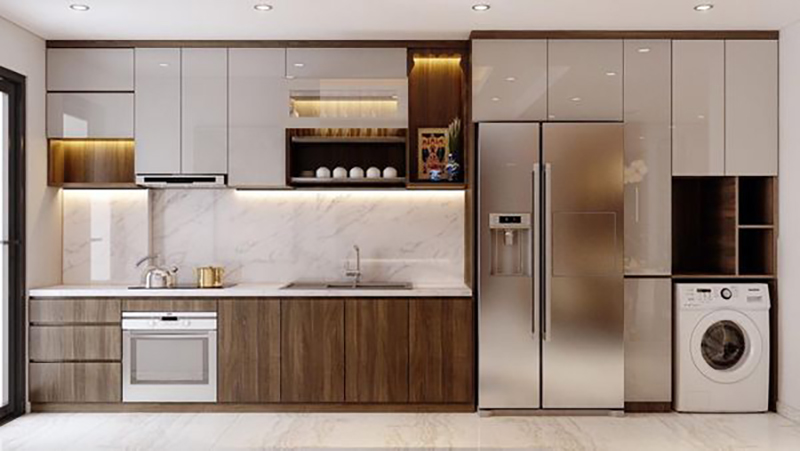 Thiết kế chữ I giúp tận dụng tối đa chiều dài của phòng bếp, đồng thời mang lại không gian sử dụng thoải mái và tiện nghi cho những căn bếp có diện tích hạn chế.